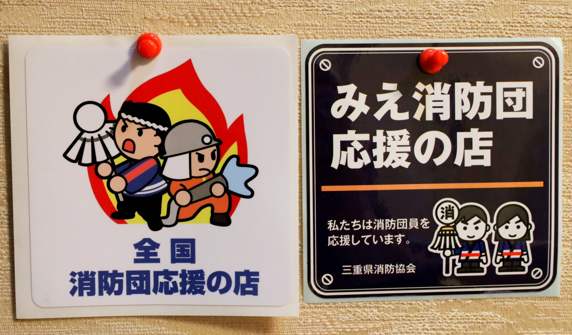 当店は、全国消防団応援の店 みえ消防団応援の店に登録しています。