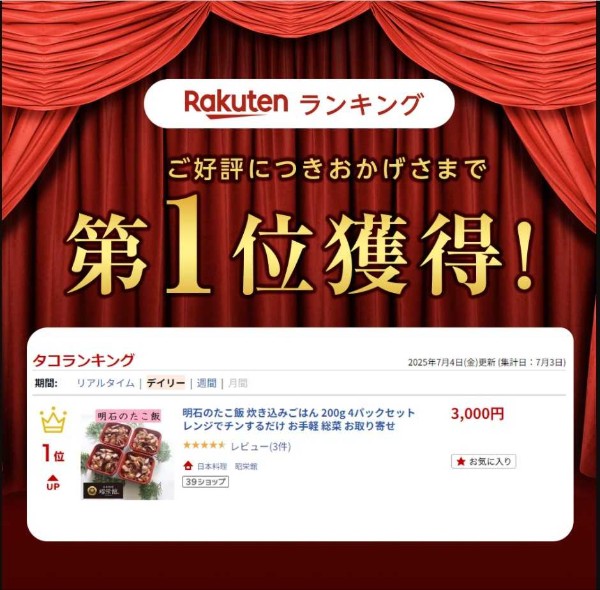 2025年 9月9日分 楽天アワビランキング 1位を獲得しました!(デイリー部門)