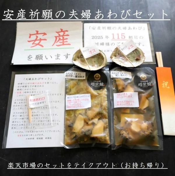 楽天市場の「安産祈願の夫婦あわびセット」たいへん人気がございます。