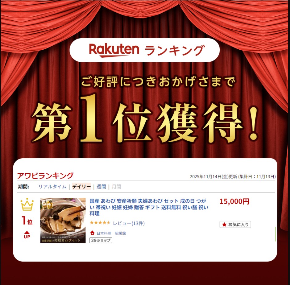 2025年 11月13日分 楽天アワビランキング 1位を獲得しました!(デイリー部門)