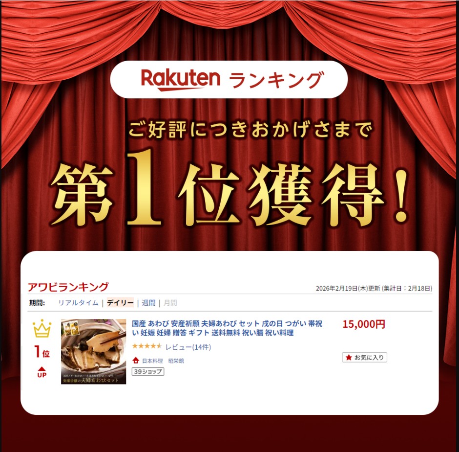 2026年 2月18日分 楽天アワビランキング 1位を獲得しました!(デイリー部門)