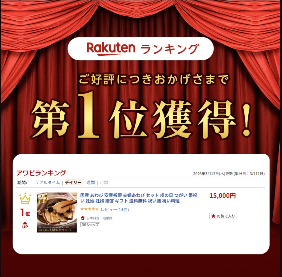 2026年 3月11日分 楽天アワビランキング 1位を獲得しました!(デイリー部門)