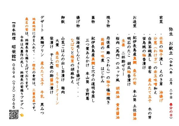 2026年 3月20日のお料理風景(雅会席)は、コチラからご覧ください。